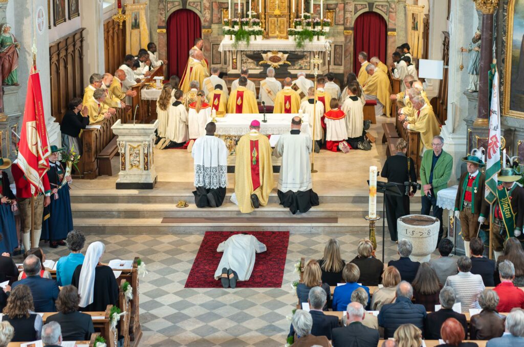 Apart de fer turisme per aquesta molt bonica zona italiana, vàrem assistir el dissabte 27 de setembre a l’ordenació de diaca permanent del Charly a la parròquia de Sant Ciriac i la Sagrada Família a la població de Pfalzen. Tot el poble estava bolcat en aquesta celebració: bé cantant en el cor, portant estendards, tocant a la banda de música, o preparant l’aperitiu posterior a l’ordenació.