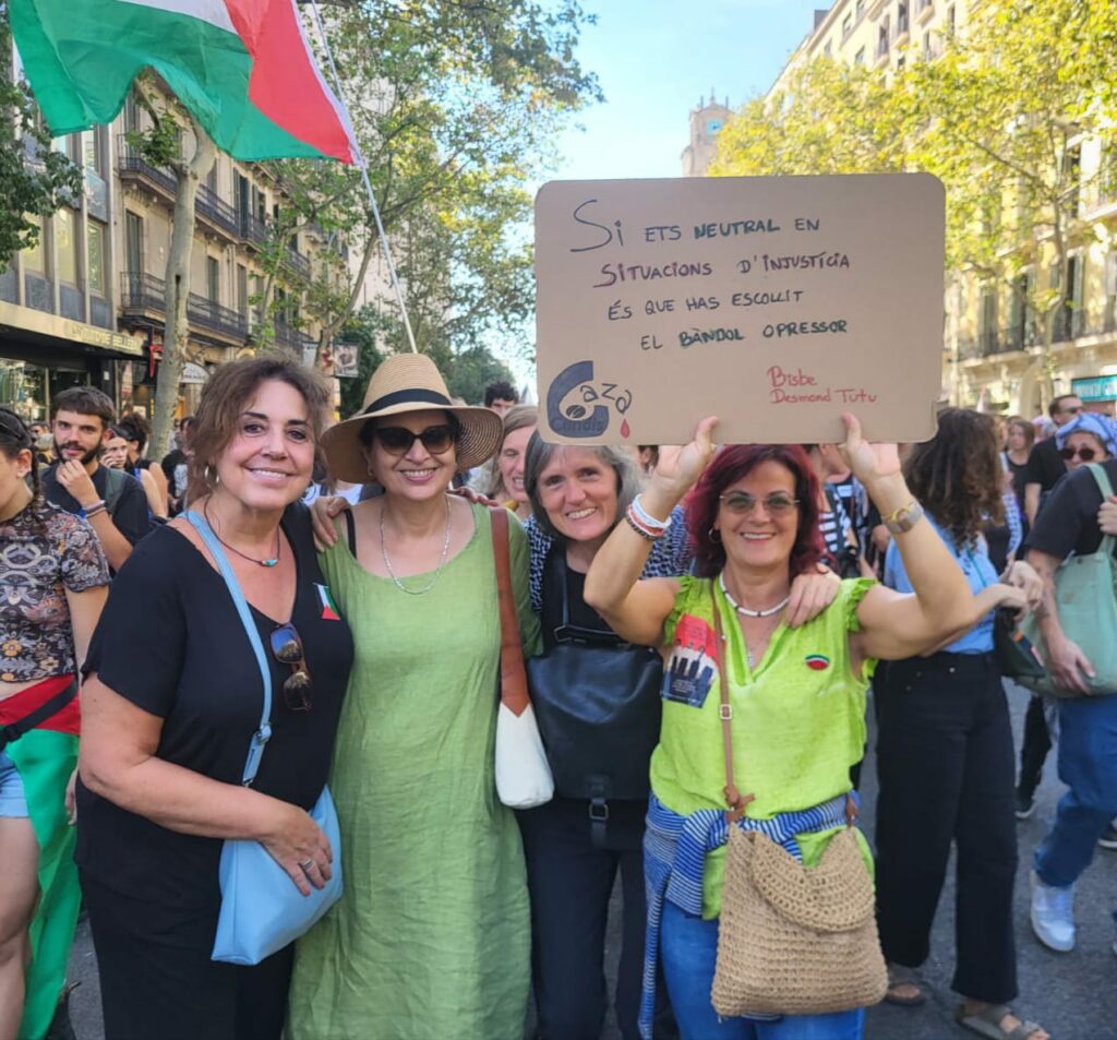 El dissabte, 4 d’octubre, va ser una jornada que la ciutadania va voler fer sentir la seva veu perquè el genocidi a Gaza s’aturi i arribi la pau. Més de 600 organitzacions van recolzar el dimarts 30 de setembre la manifestació de Barcelona i l’ACO, que també hi dona suport, va estar representada per l’expresidenta Maria Martínez. Els sindicats majoritaris, CCOO i UGT, van registrar la convocatòria de vaga general parcial per a la jornada de lluita i solidaritat amb Palestina del 15 d’octubre.