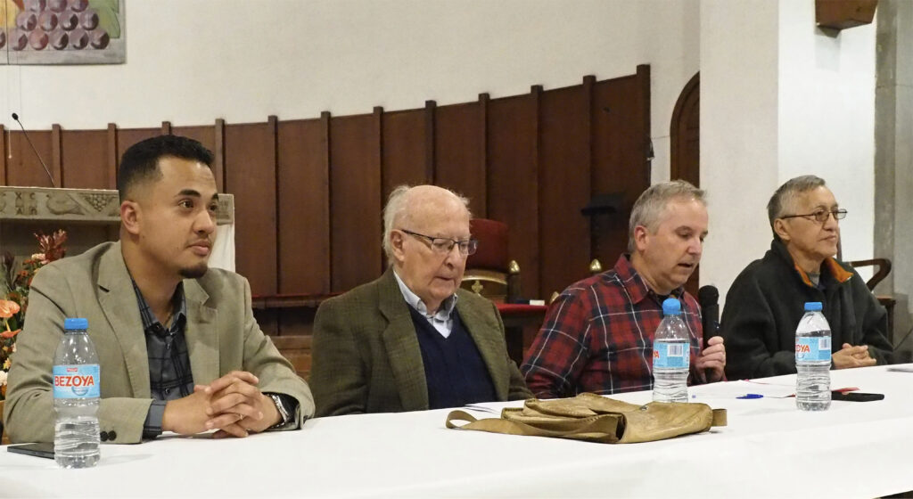 Rudy Joya, advocat i Miguel Montenegro, director de la Comissió de Drets Humans del Salvador, tots dos defensors de drets humans al país van participar amb el jesuïta Xavier Alegre a la taula rodona «La fosca realitat darrere el fenomen Bukele» en format de Revisió de Vida que va fer-se el 12 de novembre passat a la parròquia de Sant Martí del Clot. Montenegro va explicar que la situació econòmica de les classes populars a un país amb set milions d’habitants és molt precària amb una cistella de la compra que està per sobre del salari mitjà, fet que provoca l’emigració principalment als Estats Units de molts joves. De fet, al veí del nord hi viuen dos milions de salvadorencs que envien regularment remeses al seu país. D’aquesta economia se’n ressenten serveis públics com la salut o l’educació, amb una capitana de l’exèrcit al capdavant del ministeri. Pel que fa a la política, el jove advocat Rudy Joya va lamentar que els drets humans estan en retrocés des de la vigència de l’estat d’excepció (més de tres anys i continua) amb més de 80.000 detinguts acusats de pertànyer a les maras o bandes juvenils i 400 morts a la presó. Certament, al Salvador s’han reduït dràsticament els homicidis (abans de l’estat d’excepció van augmentar les desaparicions), però ha estat a partir que l’Estat va pactar amb les bandes. Aquest advocat s’ha vist obligat a demanar l’asil polític a Espanya. Xavier Alegre va destacar que les ferides per la guerra civil (1980-1992), que va ocasionar 80.000 assassinats i més de 7.000 desapareguts, continuen obertes. També l’impacte que van significar les experiències d’Òscar Romero i Ignacio Ellacuría, tots dos martiritzats. El Salvador és un país profundament religiós però que està evolucionant del catolicisme a les esglésies evangèliques (principalment luterana i episcopaliana), que van tenir el seu origen en les petites esglésies i sectes evangèliques finançades pel president nord-americà Ronald Reagan. L’advocat Joya va lamentar la falta de consciència i de memòria històrica d’un dels pobles «més treballadors i bondadosos», en paraules de Xavier Alegre, d’Amèrica Llatina. Montenegro va insistir en la necessitat d’enfortir el sistema de justícia per combatre la impunitat i la corrupció i tornar a la separació de poders. La taula rodona va ser organitzada pels Comitès Òscar Romero, la Taula Catalana pels Drets Humans i la Pau a l’Amèrica Central i Huacal; i el moderador va ser el periodista i militant de l’ACO, Joan Andreu Parra. A l’enllaç podeu consultar l’entrevista a Miguel Montenegro que se li va fer al programa «Paraules de vida», de Catalunya Ràdio. I l’article de Lucas López Pérez al blog de Cristianisme i Justícia.