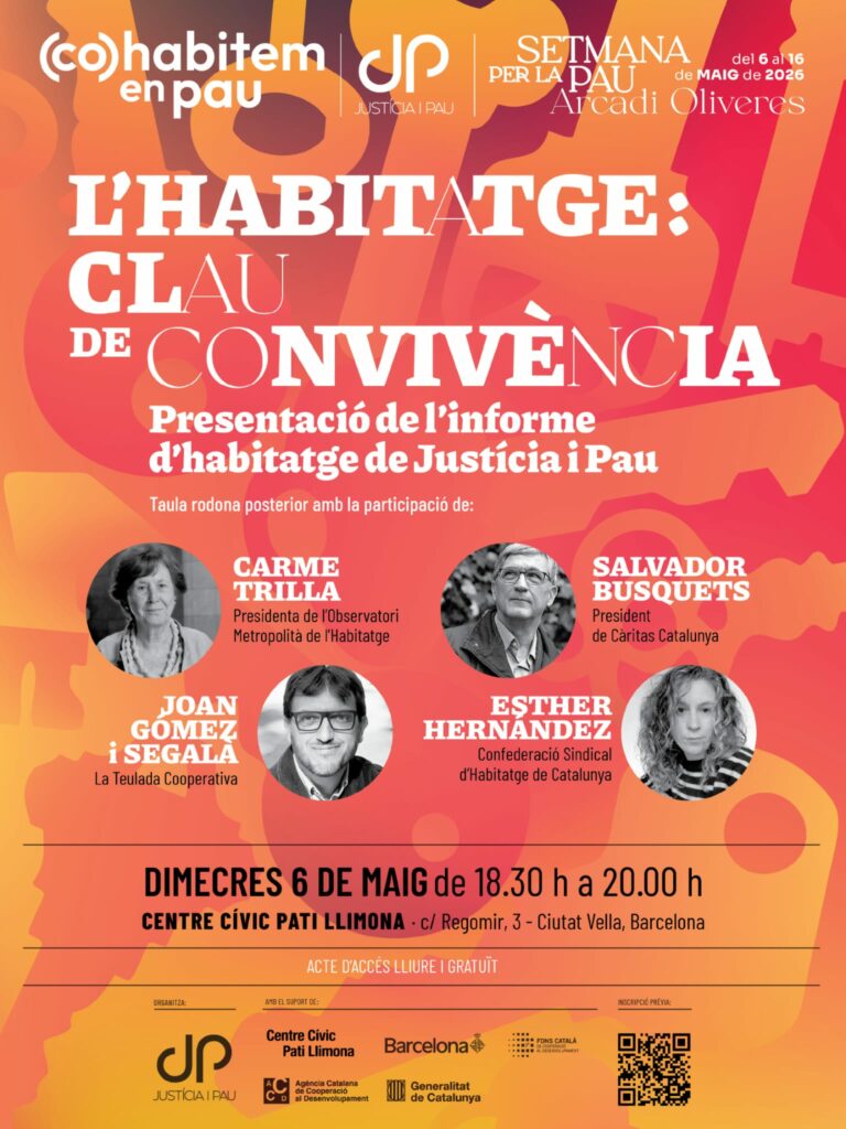 Justícia i Pau presenta el seu informe d’habitatge en l’acte d’inici de la V Setmana per la Pau – Arcadi Oliveres. L’acte comptarà també amb una taula rodona amb representants del tercer sector i el cooperativisme: